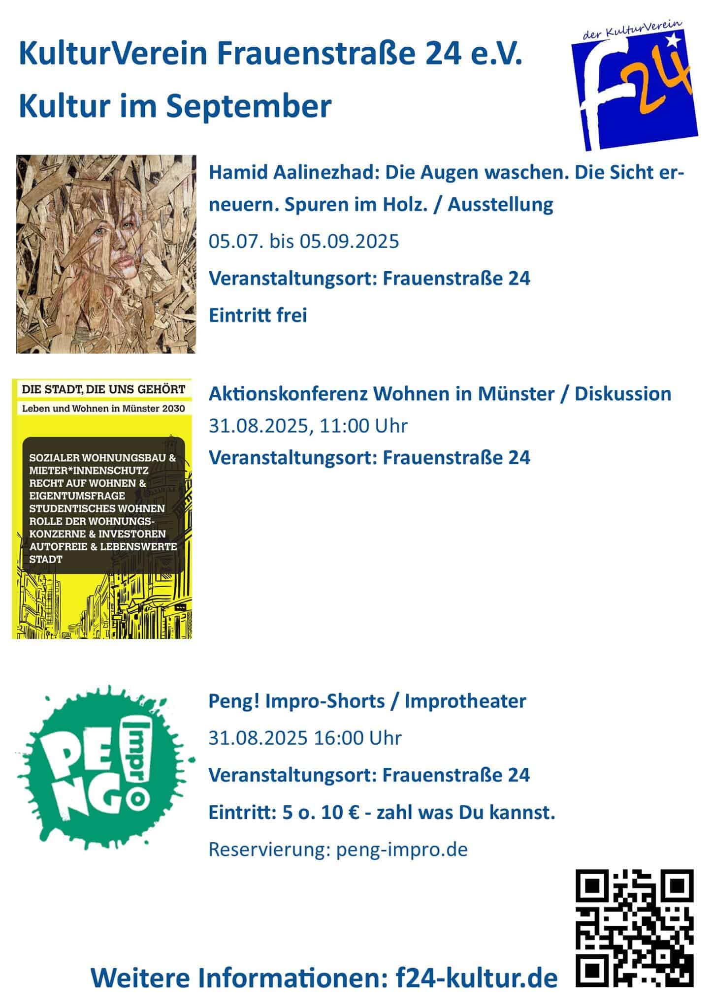 Am 26. September gibt es ein Mitmachkonzert für Kinder in der Frauenstraße 24. Im Rahmen des Kinderkulturfestivals Münster tritt Ferri in der 24 auf. Der Eintritt ist frei.
