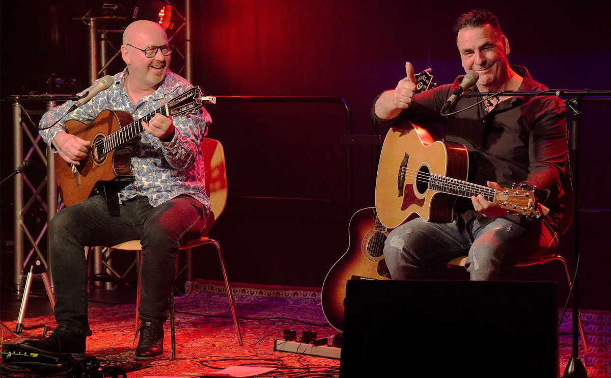Dirk Friedrich und Mathias Wiesenhütter singen ihre eigenen Lieder, gefühlvoll und von berührender Klarheit, und verzaubern ihr Publikum mit brillantem Gitarrenspiel.