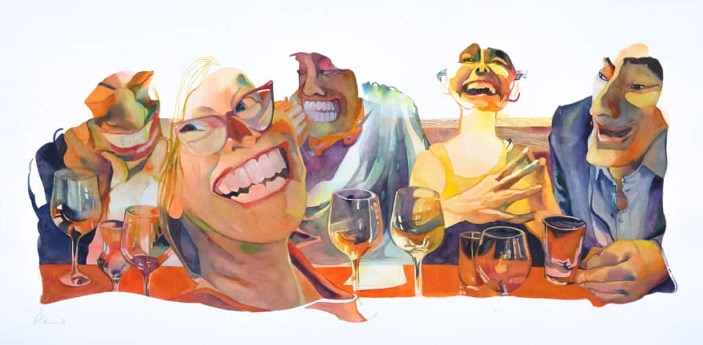 „Wenn ich anderen zugucke, bin ich immer ein Stückweit mit im Boot. … Wenn ich lache, lache ich gerne auch über mich.“ Die Menschen, die sie male, seien „wie wir“.